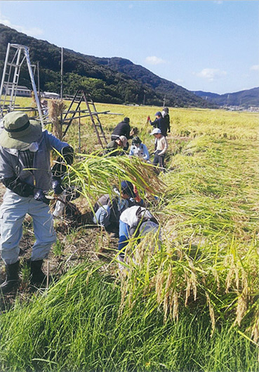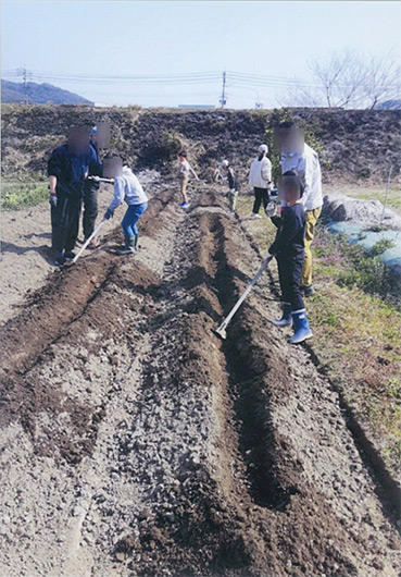 米や野菜が育つ課程を知って、そのありがたさや困難さを学ぶことに主眼を置き活動を計画しています。毎月第3日曜日を定例会とし、その間は各自の自主的な活動としています。活動の内容は米作りは田植稲刈り、野菜作りはジャガイモ、玉ねぎの植付と収穫、夏秋野菜は種蒔苗の植付収穫し、関連行事として竹の子掘り、ソーメン流し、モチツキ大会、カカシコンテスト、ヒナ祭り等を実施して地域のにぎわい創出にも努めています。