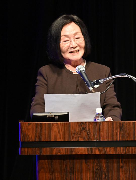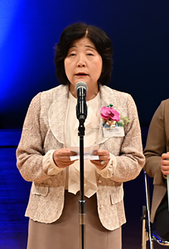 年次贈呈式は千 容子理事長の開会の辞で始まりました。 |