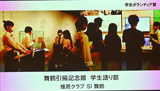 | 学生ボランティア賞は7件へ贈呈されました。 ご本人提供の映像で活動の様子を紹介しました。 |