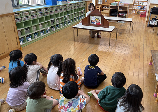 月1回、高齢者施設や放課後等デイサービス、保育園での定期的な活動の他、イベントなどの依頼にも対応。高齢者施設では、昔話の紙芝居を中心に数冊読み、合間に声掛けをして心に寄り添えるよう心がけ、デイサービスや保育園での絵本や紙芝居は、子どもたちの年齢や理解度に合わせ、季節感も大切にしながら選定している。