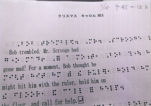 「すみれ」を表彰して下さり有難うございました。点字印刷機、パソコン、プリンター、点字用紙等を購入させて戴きました。今、力を入れているのが英字点訳。EBAEから国際的に通用するUEBに変わる過渡期の為皆で一緒に勉強し、県依頼の本は数人で分けて点訳、お互いに校正し合い協力している。仲良く楽しく活動するのが一番。皆熱心な人ばかりです。「すみれ」の存在価値は大きくなっていくでしょう。頑張ります。