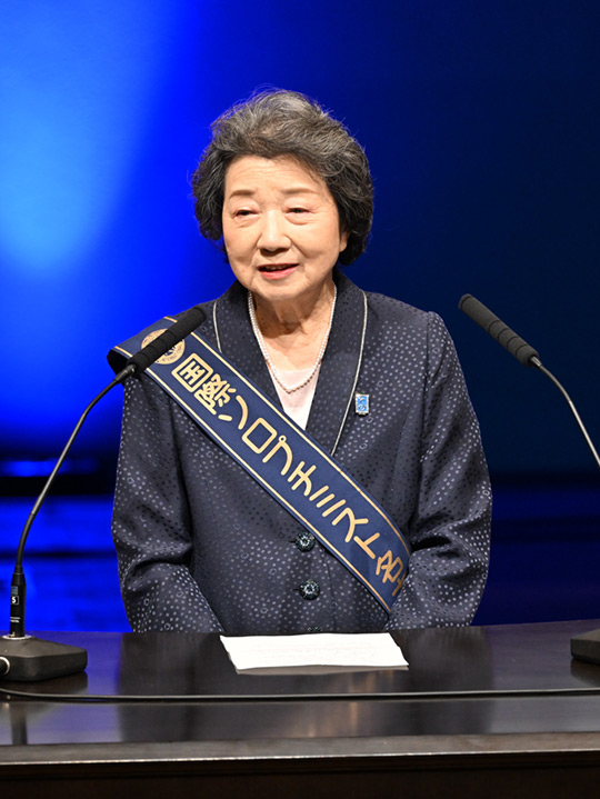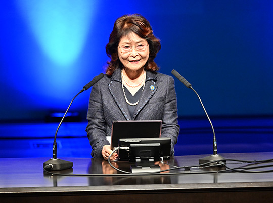 年次贈呈式は千 容子理事長の開会の辞で始まりました。 |