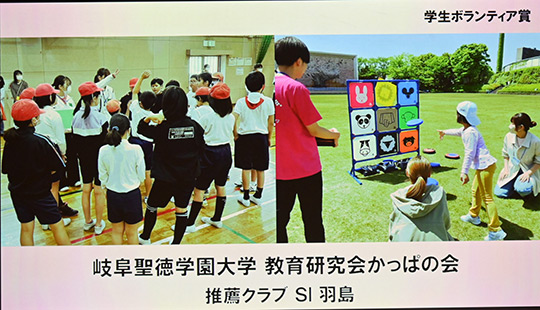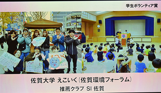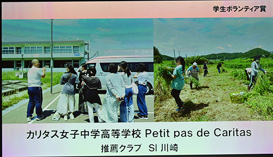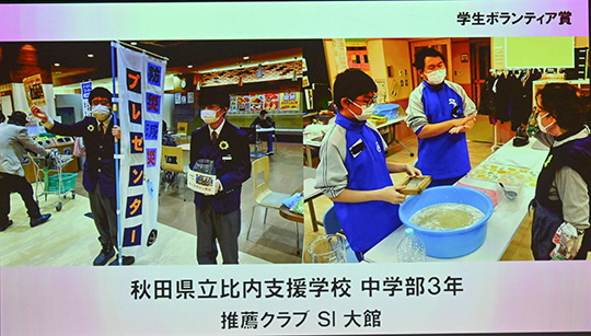 | 学生ボランティア賞は7件へ贈呈されました。 ご本人提供の映像で活動の様子を紹介しました。 |