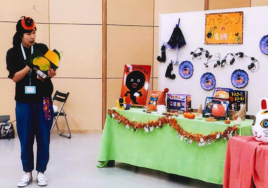 絵本の読み語りだけでなく、パネルシアター、エプロンシアター、ワークショップなど、多彩なプログラムで絵本に親しみや楽しさを感じてもらえるようなイベントを開催。月1回の公民館でのお話し会、月3回市内の保育園やこども園などへ訪問の他、依頼があれば市内の福祉施設へ出向き絵本の読み語りなどのイベントを行っている。